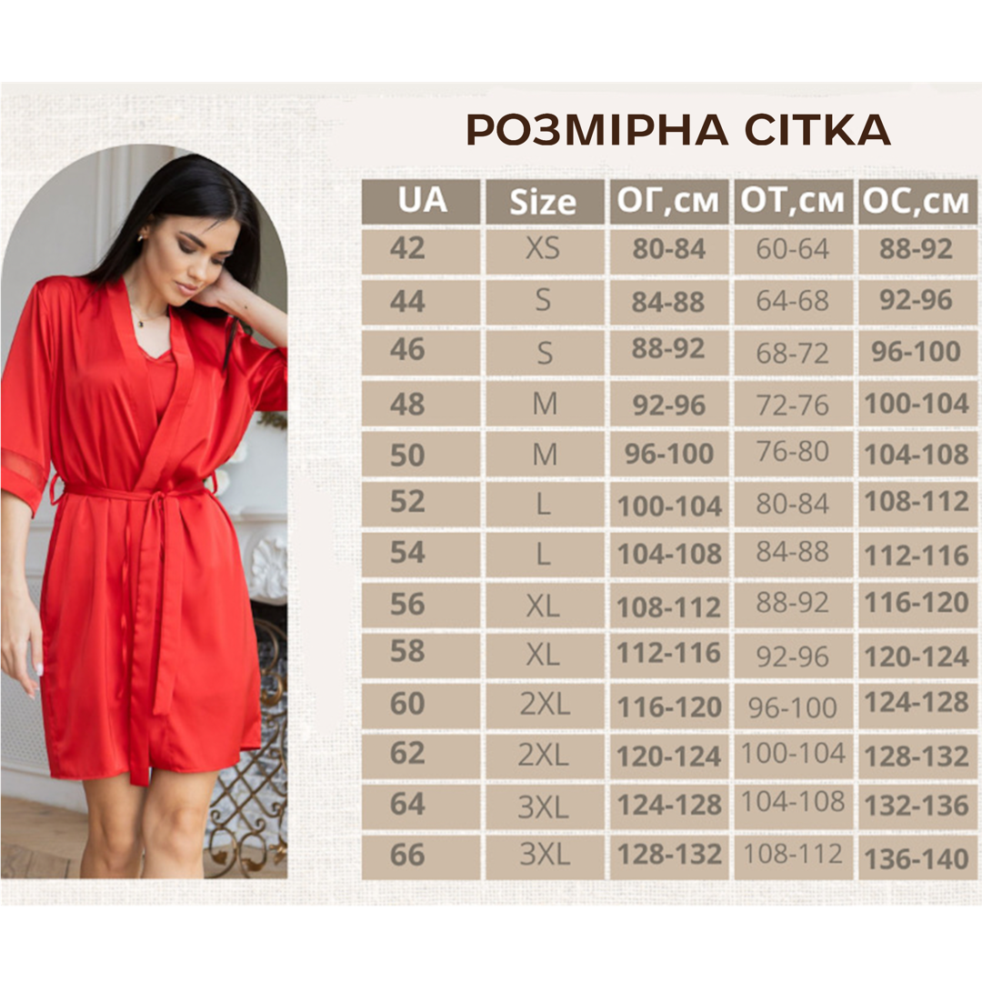 До усіх моделей піжамок у описі прикріплена розмірна сітка, по якій дуже легко визначити розмір. Розмірна сітка сформована з урахуванням властивостей тканини та крою, аби ви змогли легко обрати комфортний розмір.